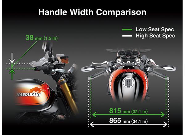 Whether riding through the city or exploring hilly terrain, the upright and relaxed riding position of the Z900RS offers both comfort and control. On models equipped with the Low Seat, a newly designed narrow handlebar better accommodates smaller riders, enhancing overall manageability.