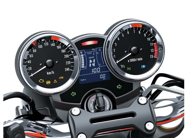 The elegantly sculpted teardrop-style fuel tank at the heart of the design draws inspiration from the iconic Z1. Echoing the Z1’s distinctive tail design, the tail cowl contributes to a sleek side profile that flows smoothly from the seat to the end of the tail. Further tribute is paid through details like the round LED headlamp, dual-dial instrumentation, and oval LED taillight—all carefully crafted elements that honour the original Z1’s timeless appeal.