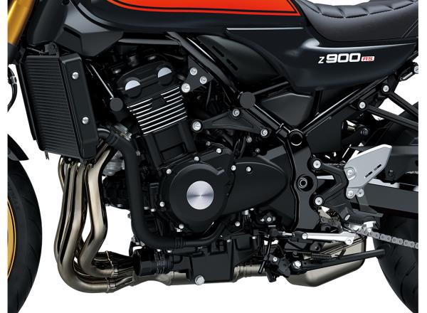 Stylish fins integrated into the cylinder head create the impression of an air-cooled engine and are further complemented by engine design cues inspired by the original Z1. The engine cover design is reminiscent of traditional naked models, and the use of die-cast aluminium for all covers adds a high-quality, premium finish.